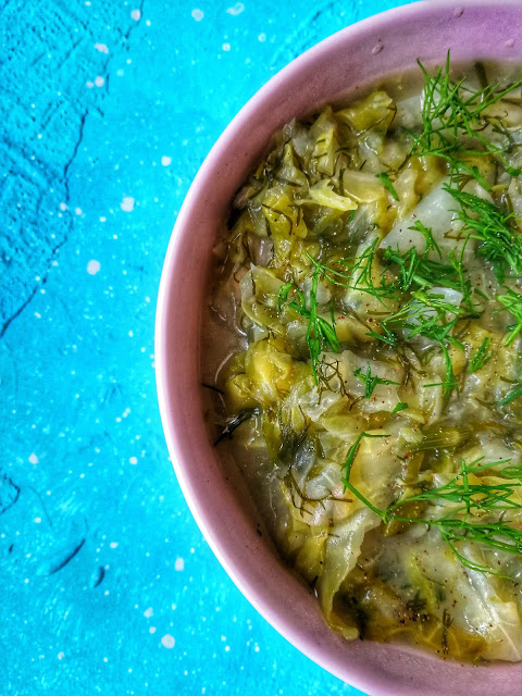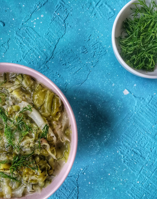 Zapach świeżego koperku kojarzy mi się z wiosną. Mamy lipiec więc lato już przyszło. Na bazarkach wielkie pęki młodego kopru przyciągają wzrok. Mogę nim posypywać młode ziemniaczki, dodać do zupy albo zjeść na kanapkach. W połączeniu z serkiem i wędzonym łososiem tworzy pyszne i zdrowe śniadanie. Dziś jednak wykorzystam go do młodej kapusty, która również jest obowiązkowym wiosennym warzywem.