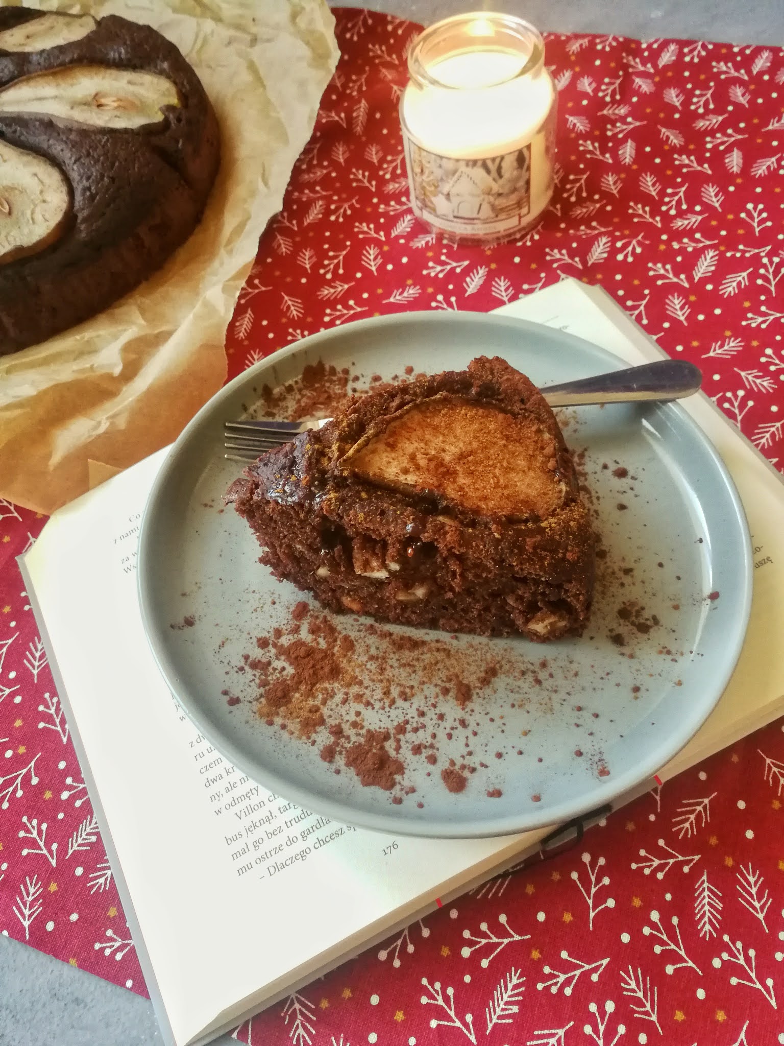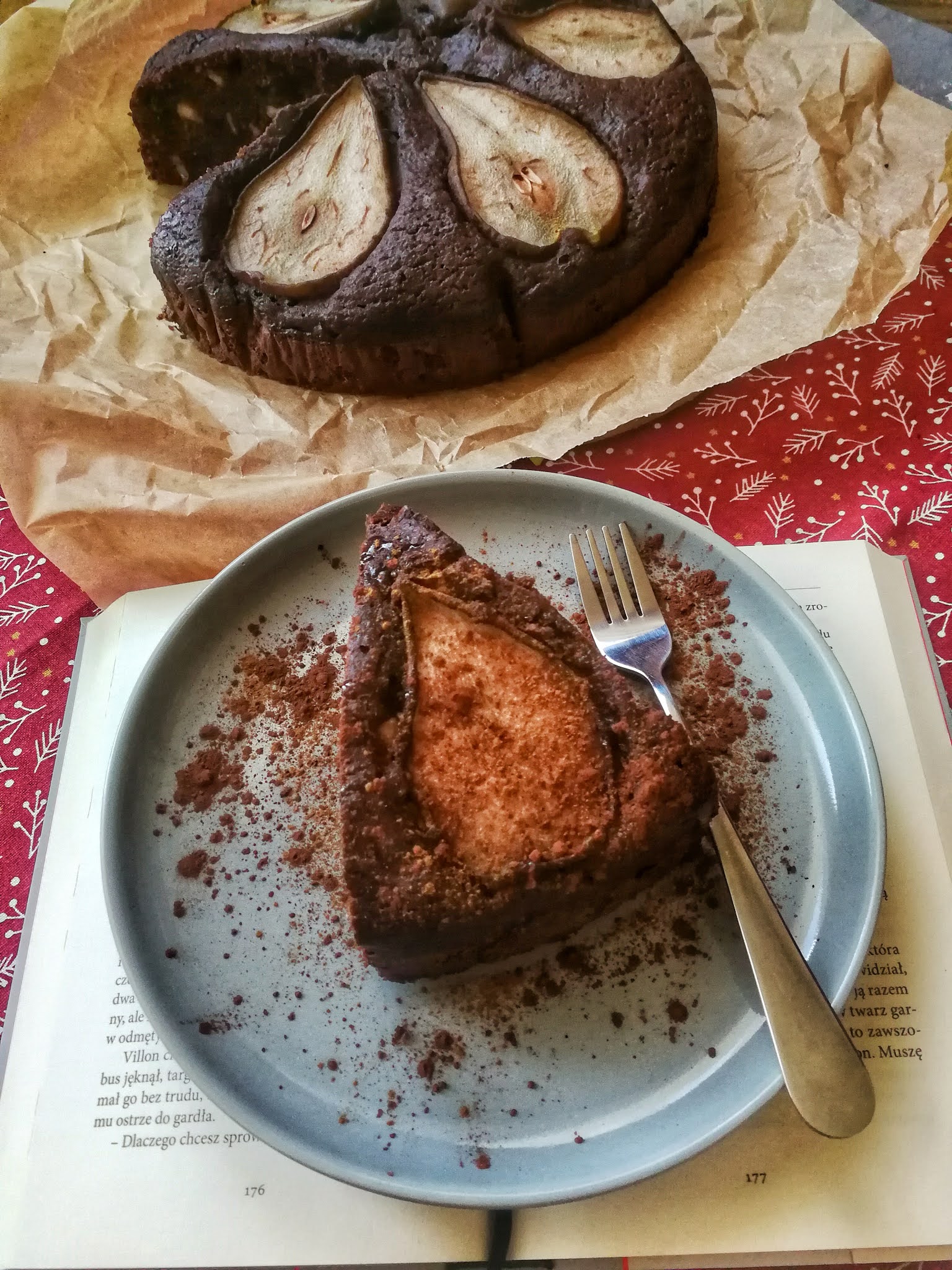 Przygotuj formę. Wysmaruj ją tłuszczem i wyłóż papierem do pieczenia (razem z brzegami. Do wysmarowanej blachy łatwiej przykleić papier 🙂 wysmaruj olejem również założony już papier.) Jajka zmiksuj z erytrytolem na puszystą masę. W jednej misce wymieszaj suche składniki, w drugiej olej i mleko. Ciągle miksując dodawaj na zmianę mix suchych składników i mleko z olejem. Dokładnie wymieszaną masę przełóż do formy, wyrównaj. Na górze wyłóż pokrojoną w plastry gruszkę. Piecz w 180 stopniach przez ok. 50 minut. Przed wyjęciem sprawdź patyczkiem czy ciasto w środku jest już upieczone.
